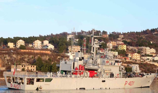 İtalya'dan 49 kişilik düzensiz göçmen grubunu taşıyan gemi, iki ülke arasındaki anlaşma kapsamında Arnavutluk'a geldi.