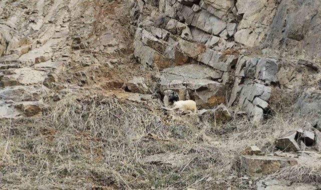 Tunceli'nin Pertek ilçesinde itfaiye ekipleri, kayalıklarda mahsur kalan köpeği kurtardı.
