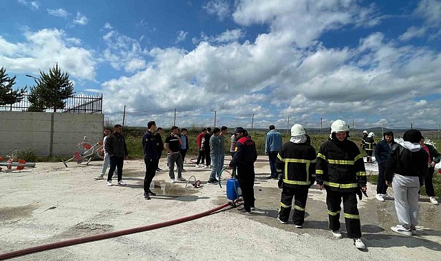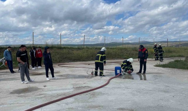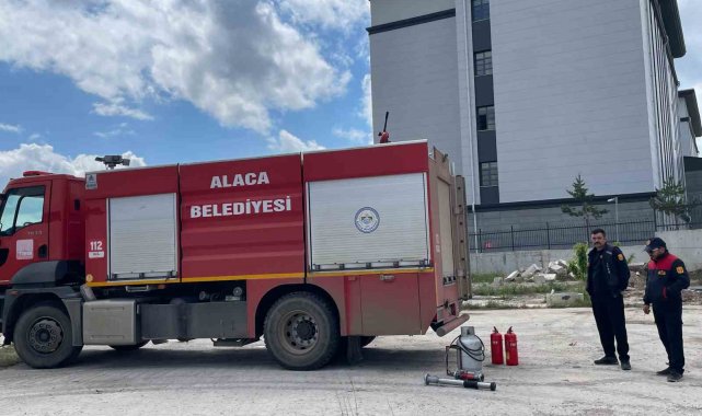 Alaca Belediyesi itfaiye ekipleri tarafından Hitit Üniversitesi Alaca Avni Çelik Meslek Yüksekokulu'nda eğitim gören geleceğin itfaiyecilerine uygulamalı eğitim verildi.