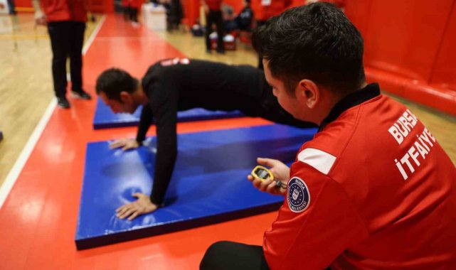 Bursa'da 100 itfaiye eri alımı için açılan sınava giren 450 aday, uzman itfaiyeciler tarafından özel olarak hazırlanan parkurda fiziki dayanıklılık testine tabi tutuldu. Ağırlık taşıma, merdiven çıkma, slalom koşu, şınav, mekik ve araç kullanmadaki hünerlerini gösteren adaylar, ilk 100'e girebilmek için ter döktü.