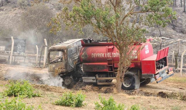 Borça Köyü'ndeki yangına destek için gelen Zonguldak'ın Devrek İlçe Belediyesine ait itfaiye aracı alevlerin arasında kaldı. Alevler bir anda aracı sararken, içindekiler kendilerini zor dışarı attılar. Araç tamamen alevlere teslim olurken, şans eseri can kaybı yaşanmadı.