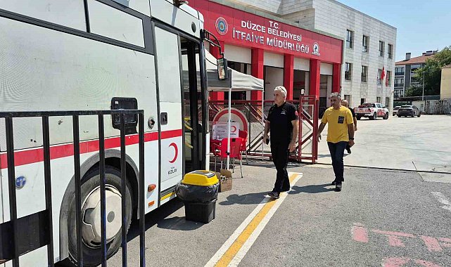 Düzce(İHA) – İnsanların en çaresiz zamanlarında yanlarında olan itfaiyeciler, son dönemde de çıkan orman yangınlarını söndürmek içinde mücadele eden Düzce Belediyesi İtfaiye Müdürlüğü çalışanları azalan Kızılay'ın kan stoklarına takviye olmak için kampanya başlattı.