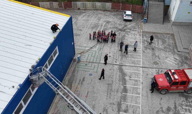 Kırıkkale'de itfaiye ekipleri, bir okulun spor salonunun çatısına kaçan topları merdivenli araçla indirip öğrencilerin yüzünü güldürdü.