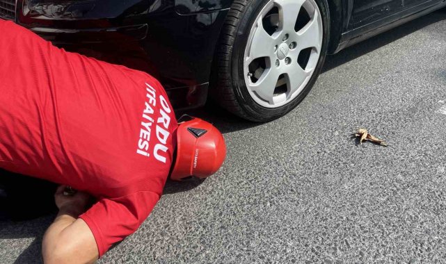 Ordu'nun Ünye ilçesinde, bir otomobilin motor kısmına giren yavru kedi, itfaiye ekiplerinin çalışması sonucunda kurtarıldı.