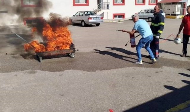 Teorik eğitimin ardından, uygulamalı bölümde ise mutfak yangınları ve sıvı yangınlarına müdahale yöntemleri gösterildi. Katılımcılar, kuru kimyevi tozlu portatif yangın söndürme cihazlarını kullanarak birebir uygulama yapma imkânı buldu.