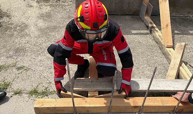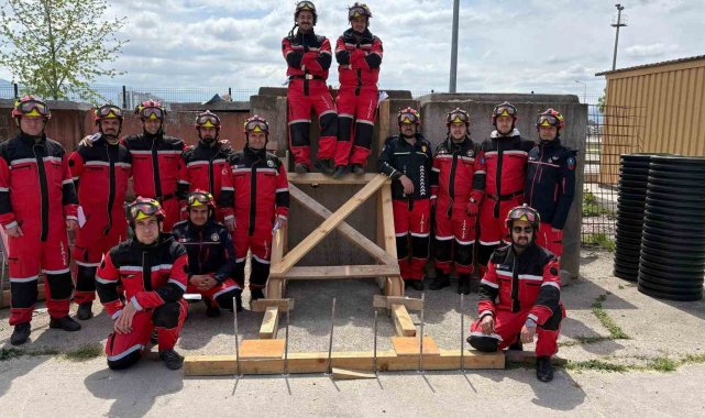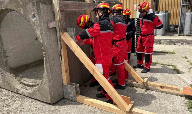 Kocaeli itfaiyesi, ağır arama kurtarma ekibine tahkimat ve iple erişim eğitimi verdi.