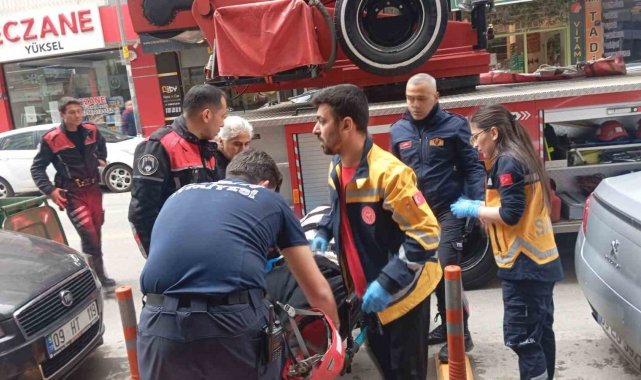 Aydın'ın Efeler ilçesinde evinde düşerek ayağını kıran ve kilosu sebebiyle merdivenlerden indirilemeyen genç, itfaiyenin asansörlü merdiveniyle balkondan indirilmek istendi. "Korkarım" diyerek asansörlü merdiven ile inmek istemeyen genç, kırık ayağıyla 4 katlı apartmandan inerek ambulansa ulaştırıldı.