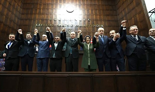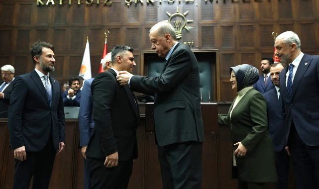 Cumhurbaşkanı Recep Tayyip Erdoğan, partisinin TBMM grup toplantısına katılan ve AK Parti'ye geçen Kütahya'nın Gediz ilçesi Yenikent Beldesi Belediye Başkanı Cumali Öztürk'e rozet taktı.