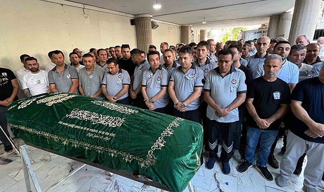 İzmir'in Menderes ilçesinde şehir içi banliyö treni İZBAN'da sigara içen bir magandayı uyarmasının ardından saldırıya uğrayan ve göğsüne aldığı darbeyle hayatını kaybeden güvenlik görevlisi, son yolculuğuna uğurlandı.