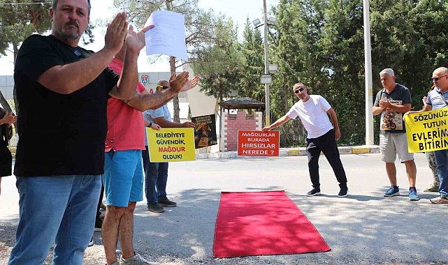İzmir Büyükşehir Belediyesi'nin kooperatif mağdurlarından kırmızı halılı protesto