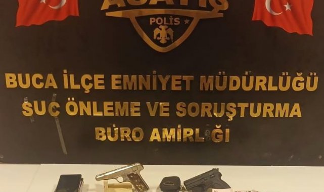 Buca İlçe Emniyet Müdürlüğü ekiplerince Mustafa Kemal Mahallesi'nde gerçekleştirilen operasyonda E.C.U. ve B.Ö. isimli şüpheliler yakalandı. Şüphelilerin bulunduğu araçta yapılan aramada 58 bin 912 adet uyuşturucu nitelikli hap ele geçirildi. Ekiplerin ilçede yürüttüğü bir başka çalışmada da E.A., S.D. ve Y.A. isimli şüpheliler yakalandı. Şahısların üzerlerinde ve adreslerinde yapılan aramalarda 2 adet ruhsatsız tabanca, 35 adet 7.65 mm fişek, 49 adet uyuşturucu nitelikli hap, 91 gram metamfetamin ve uyuşturucudan elde edildiği değerlendirilen 178 bin 900 TL geçirildi.