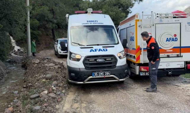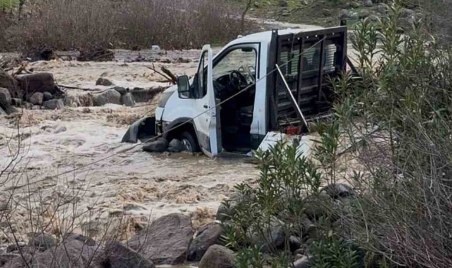 İzmir'de etkili olan sağanak yağış hayatı olumsuz etkilerken, derede mahsur kalan kamyonetteki 3 kişi ekiplerce kurtarıldı.