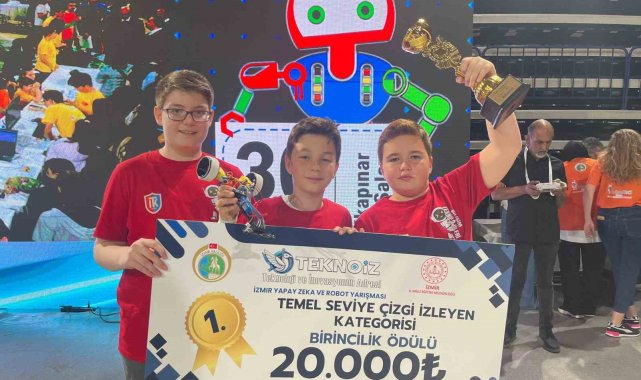 İzmir Özel Türk Koleji'nde 6'ıncı sınıf öğrencileri Akın Arslan Çalışkan, Orhan Gök ve Demir Kurudere 'Linespond' isimli robotu tasarlayan çocuklar ise projelerine dair şunları söyledi: