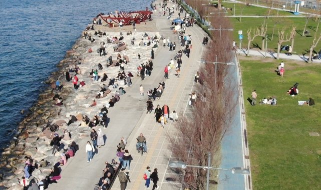İzmir'de güneşli havayı gören vatandaşlar sahile akın etti