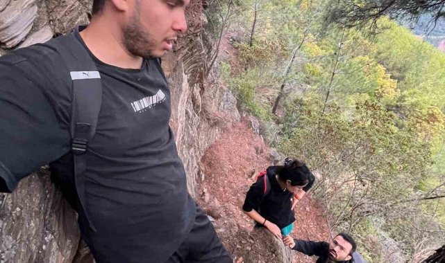 İzmir Balçova Terapi Ormanları'nda dağlık alanda tırmanırken kayalıklarda mahsur kalan üç genç, itfaiyenin başarılı operasyonuyla kurtarıldı.