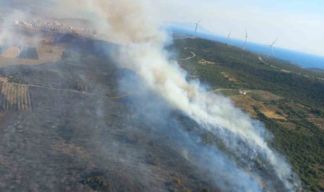 İzmir'de makilik alanda çıkan yangına müdahale devam ediyor