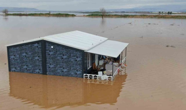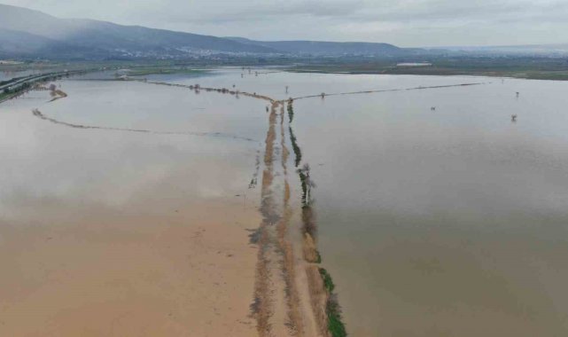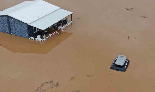 Taşkının meydana geldiği araziler ve hobi bahçeleri dron ile görüntülendi. Kaydedilen görüntülerde, ovanın büyük bir bölümünün suyla kaplandığı, bölgedeki hobi bahçelerinin su altında kaldığı ve bir otomobilin yükselen suların ortasında kaldığı yer aldı.