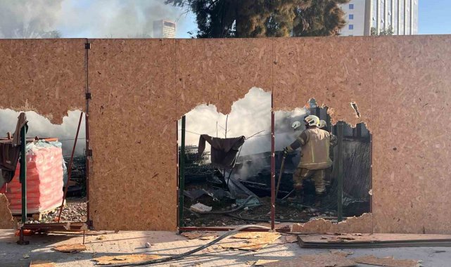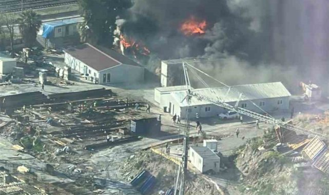 İzmir'in Bayraklı ilçesinde bir inşaat firmasına ait şantiyede yangın çıktı. Kara dumanların yükseldiği yangının söndürülmesi için itfaiye yoğun çalışma sergiliyor.