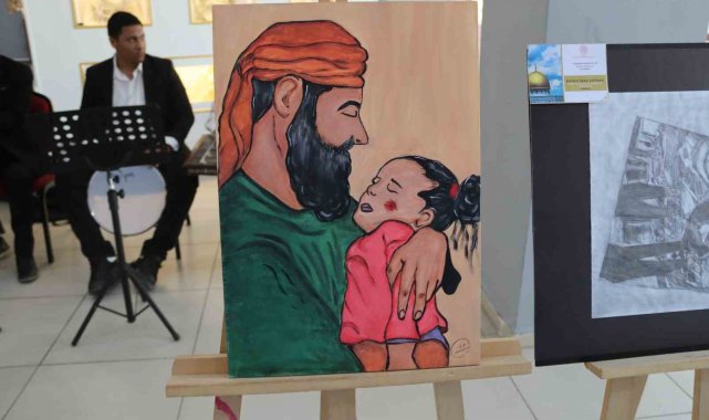 Programın en dikkat çeken bölümlerinden biri, öğrencilerin Gazze'de şehit düşen çocuklar için hazırladığı resim sergisi oldu. Protokol üyeleri ve davetliler tarafından gezilen sergide, çocukların gözünden savaşın acı yüzü ve masumiyetin yansımaları incelendi.
