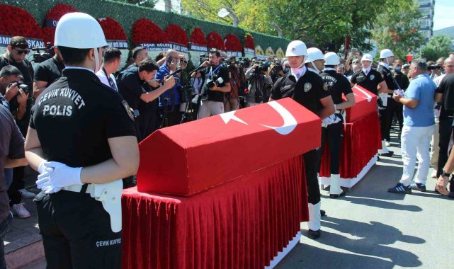 Meydana gelen saldırıda şehit düşen 1. Sınıf Emniyet Müdürü ve Polis Başmüfettişi Muhsin Aydemir ile Polis Memuru Hasan Akın'ın cenazeleri, İzmir Adli Tıp Kurumu'nda yapılan otopsilerin ardından ailelerine teslim edildi. Şehitler için Gaziemir 15 Temmuz Şehitler Camii'nde tören düzenlendi. Törene İçişleri Bakanı Ali Yerlikaya, Emniyet Genel Müdürü Mahmut Demirtaş, İzmir Valisi Süleyman Elban, İzmir Büyükşehir Belediye Başkanı Cemil Tugay, Ege Ordusu ve Garnizon Komutanı Orgeneral İrfan Özsert, İzmir Cumhuriyet Başsavcısı Ali Yeldan, İzmir İl Emniyet Müdürü Celal Sel, İzmir İl Jandarma Komutanı Tümgeneral Metin Düz, Sahil Güvenlik Hava Komutanı Tuğamiral Ertuğrul Şerbetçi, İzmir milletvekilleri ve siyasiler, şehidin meslektaşları, askeri ve sivil erkan katıldı. Törende şehit Muhsin Aydemir'in eşi Ebru Aydemir, çocukları Leyla ve Mert Aydemir ile şehit Hasan Akın'ın babası Ferhat Aydemir, annesi Fatma Akın, eşi Şule Akın, çocukları Esma ve Zeynep Akın yer aldı. Aileler ve mesai arkadaşları gözyaşlarıyla şehitlere veda ederken, cenaze töreninde duygu dolu anlar yaşandı.