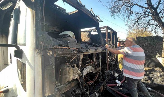 İzmir'in Bornova ilçesindeki tır garajında çıkan yangında, bir tır ile boş dorse tamamen yandı. Araç içerisinde emanet olarak bulunan 32 bin TL nakit para da küle döndü.
