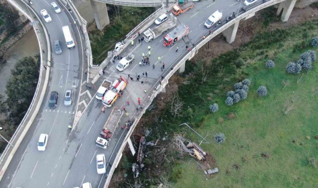 Kaza, Buca ilçesi Homeros Bulvarı üzerindeki viyadükte meydana geldi. İddiaya göre, seyir halindeki bir çekicinin freni boşaldı. Kontrolden çıkan çekici, önünde seyreden otomobile çarptı. Çarpmanın etkisiyle savrulan otomobil bariyerleri aşarak viyadükte asılı kalırken, hızını alamayan çekici metrelerce yükseklikten aşağı düştü.