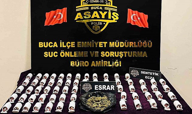 İzmir'in Buca ilçesinde polis ekipleri tarafından uyuşturucu madde ticareti ve imalatına yönelik düzenlenen operasyonda 3 bin 478 adet sentetik ecza ile 150 gram esrar ele geçirilirken, olayla ilgili bir şüpheli şahıs gözaltına alındı.