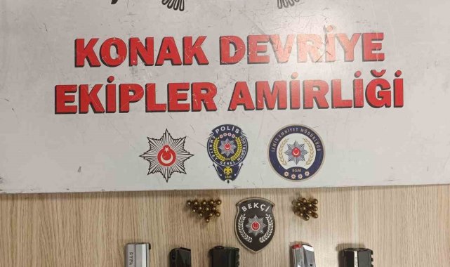 Konak İlçe Emniyet Müdürlüğü Narko Alan ve Devriye Ekipler Büro Amirliği ekipleri, suç ve suçlularla mücadele kapsamında 9 Ağustos günü ilçe genelinde çalışma yaptı. Operasyonda 4 adet ruhsatsız tabanca, 120 gram bonzai, 62 adet sentetik ecza hapı, uyuşturucu madde ticaretinden elde edildiği değerlendirilen 32 bin 765 lira ve 38 adet mermi ele geçirildi.