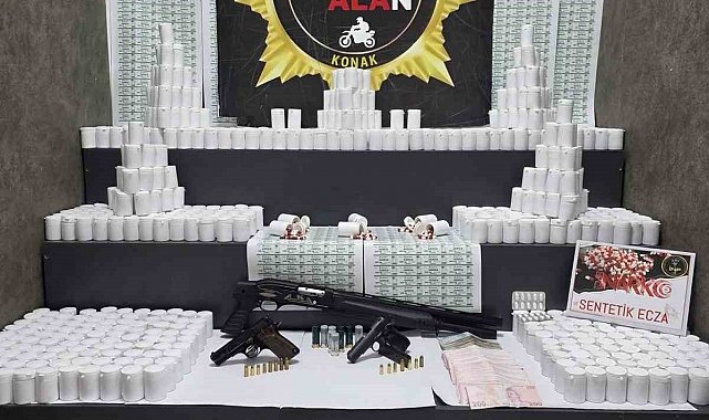 Edinilen bilgiye göre, İl Emniyet Müdürlüğü Konak İlçe Emniyet Müdürlüğüne bağlı Narkotik Suçlarla Mücadele (NARKO ALAN) ekipleri, uyuşturucu madde ticaretinin önlenmesine yönelik çalışmalarını sürdürüyor. Ekipler, 6 Ocak günü Hilal Mahallesi'nde uyuşturucu madde depolandığı ve ticaretinin yapıldığı belirlenen adreslere operasyon düzenledi. Adreslerde yapılan aramalarda 108 bin 472 adet sentetik ecza, 1 adet pompalı tüfek ve tüfeğe ait 9 adet dolu kartuş, 2 adet ruhsatsız tabanca, şarjörler ve çok sayıda fişek ile suçtan elde edildiği değerlendirilen 75 bin 100 TL nakit para ele geçirildi. Operasyonda N.P. (28), F.B. (29) ve N.K. (41) isimli 3 şüpheli yakalanarak gözaltına alındı. Yapılan sorgulamada şüphelilerden birinin kesinleşmiş hapis cezası ile arandığı tespit edildi. Şüpheliler hakkında adli işlem başlatıldığı öğrenildi.
