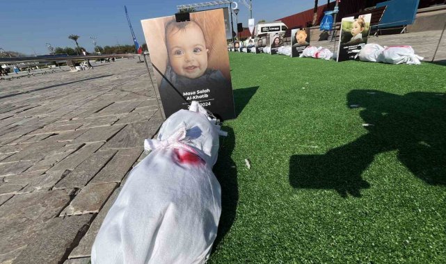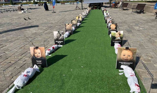 Etkinlikte, Gazze'deki katliama ve soykırıma dikkat çekmek amacıyla hazırlanan "Küçük Kefenler Sergisi" büyük ilgi görüyor. Görevli Aynur Önen, serginin amacını şu sözlerle dile getirdi: