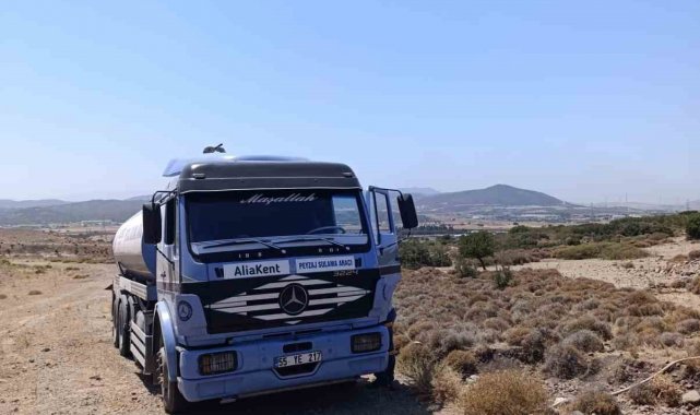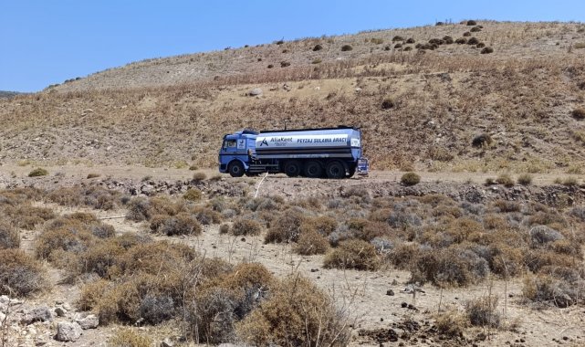 İzmir'in Aliağa ilçesinde, kuraklık nedeniyle su sıkıntısı yaşayan yaban hayvanları için bölgeye tankerle su taşındı.