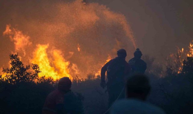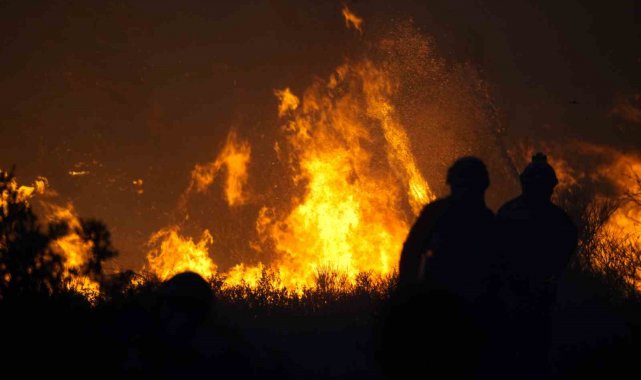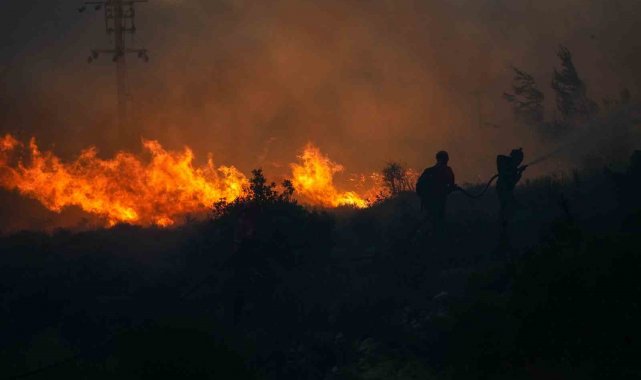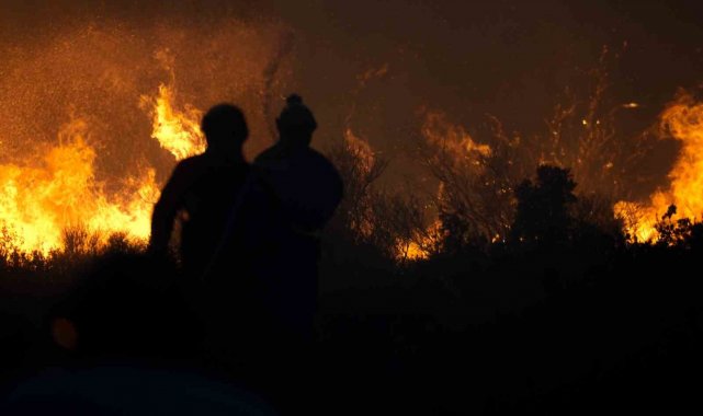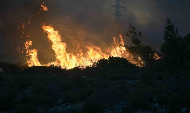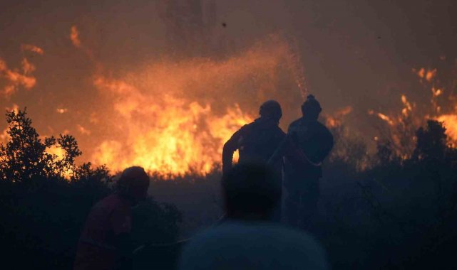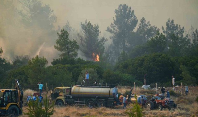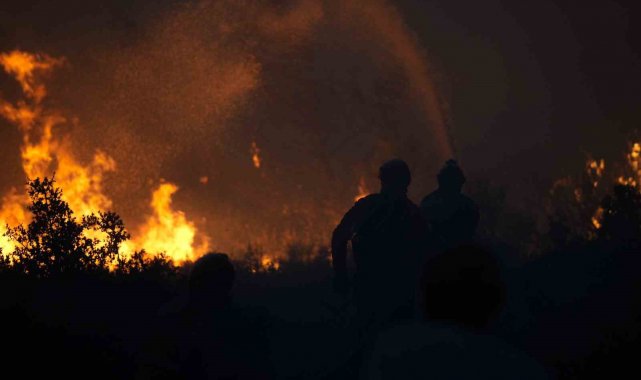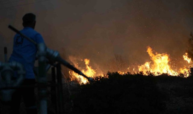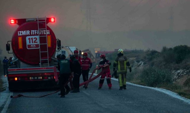 İzmir'in Çeşme ilçesinde, zirai bölgede başlayıp ormanlık alana yayılan yangını söndürme çalışmaları aralıksız devam ediyor.