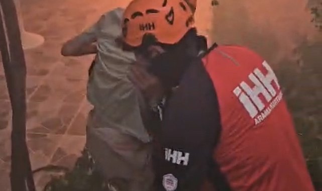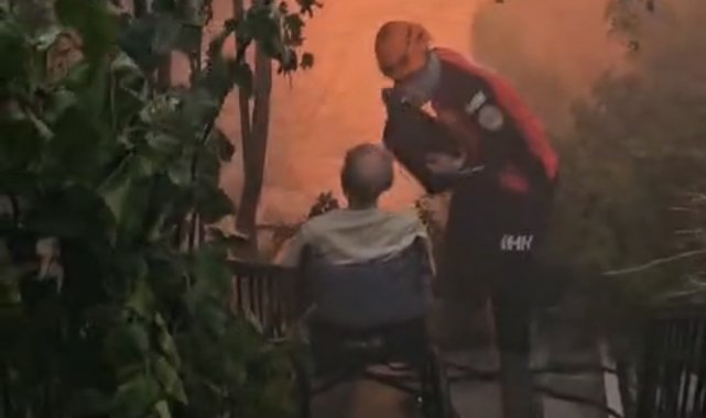 İzmir'in Menderes ilçesinde başlayan ve Seferihisar'da çok sayıda evi küle çeviren orman yangınında duygu dolu kareler ortaya çıktı. Evinden çıkamayan tekerlekli sandalyedeki yaşlı adam ve yine evlerinde mahsur kalan bir vatandaş ile kedisi ekipler tarafından kurtarıldı.