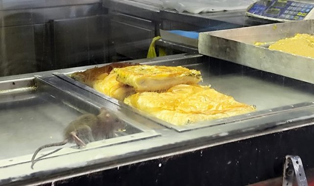 İzmir'den iğrenç görüntü: Börek tezgahlarında fare cirit attı