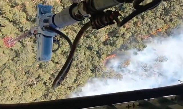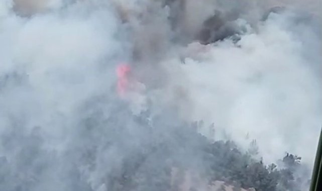 İzmir'in Foça ilçesinde çıkan orman yangınına ekipler havadan ve karadan yoğun şekilde müdahale ediyor.