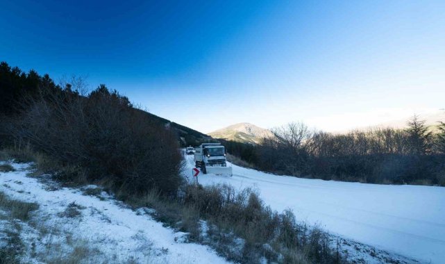 Spil'den Bozdağ'a kar kaplanan yollara müdahale