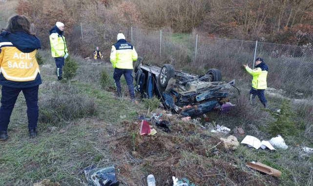 İzmir-İstanbul Otoyolu'nda feci kaza: Otomobil şarampole yuvarlandı