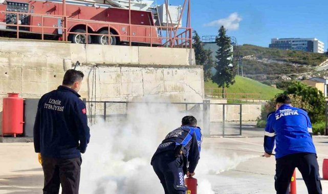İzmir Büyükşehir Belediyesi zabıta ekipleri, yangın riskine karşı alınması gereken önlemler ile muhtemel yangınlara karşı doğru müdahale tekniklerine yönelik eğitimden geçirildi.