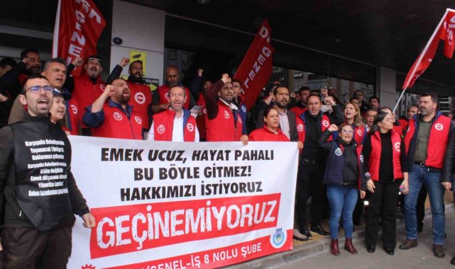 Karşıyaka Belediyesinde çalışan DİSK'e bağlı Genel İş 8 No'lu Şube üyeleri, maaşlarının eksik yatması, bazı ayların maaşlarının ise hiç ödenmemesi nedeniyle belediye önünde eylem yaptı. Genel İş 8 No'lu Şube Başkanı Deniz Şahin Gümüştekin, "Karşıyaka Belediyesi çalışanlarının maaşı, aylardır gününde yatmıyor, eksik yatıyor, geçmiş dönem ücret alacakları ödenmiyor. Personel A.Ş. çalışanlarının şubat ayı maaşının yüzde 50'si, 2022 yılı toplu iş sözleşmesine ait bir aylık geriye dönük alacağı ödenmemiştir. Kent A.Ş. çalışanlarının ise ocak ayı maaşından parça parça 5 bin TL, 2 bin TL, bin 500 TL, 3 bin TL olmak üzere toplamda 11 bin 500 TL yatırılmış, geri kalanı yani yüzde 25-yüzde 30' a yakını ödenmemiş olup şubat ayı maaşı henüz hiç ödenmemiştir. 2022 yılı toplu iş sözleşmesine ait bir aylık geriye dönük alacağı ve 2021 yılından 2 ikramiyesi henüz ödenmemiştir" dedi.
