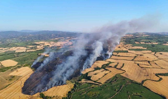 Balıkesir'in Susurluk ilçesinde rüzgarın etkisiyle büyüyen yangında yüzlerce dönüm tarım arazisi alev alev yandı. Yangına 3 helikopter müdahale etti.