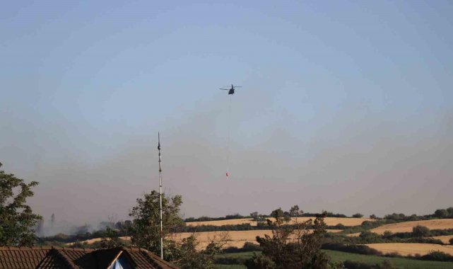 İzmir otoyolunun yanı başındaki yangına 3 helikopter müdahale etti