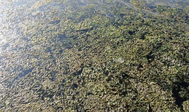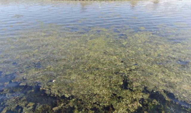 İZMİR (İHA)-İzmir'in Karşıyaka ilçesi Bostanlı sahilinde deniz yüzeyi, "deniz marulu" olarak bilinen yeşil tabakayla kaplandı. Prof. Dr. Doğan Yaşar, "Geçen yıl büyük bir plankton patlamasıyla olağanüstü bir balık ölümü yaşadık. Bugün deniz marulunun görülmesi, körfezin çok kirli olduğunun açık bir göstergesidir." dedi.