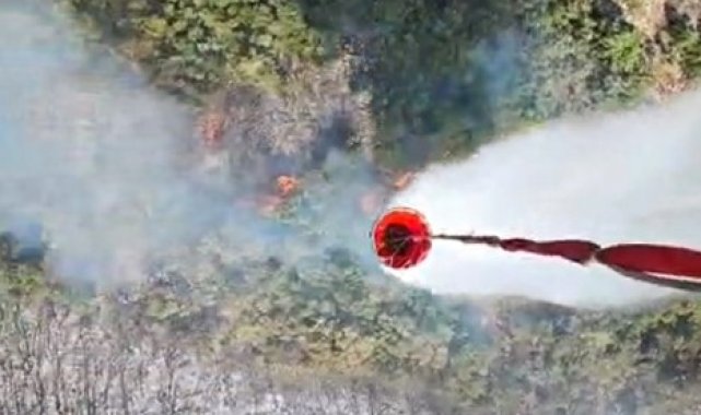İzmir'in torbalı ilçesinde ormanlık alanda çıkan yangına havadan ve karadan müdahale ediliyor.