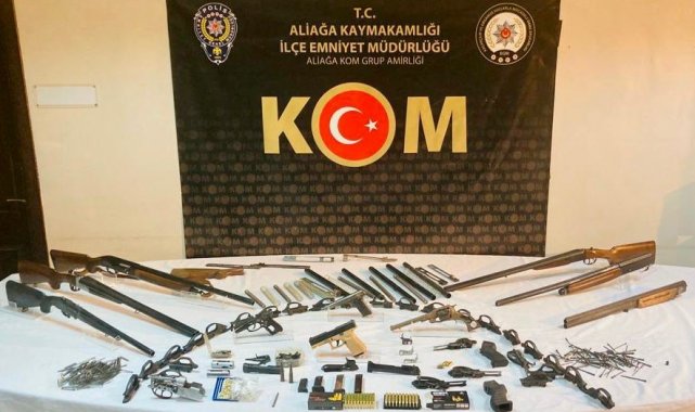 İzmir Emniyet Müdürlüğü Organize Suçlarla Mücadele Şube Müdürlüğü Aliağa KOM Büro Amirliği ekipleri, bir şüphelinin kurusıkı tabancaların namlularını değiştirerek satışa sunduğu bilgisini edindi. Yürütülen çalışmalar sonucu, 23 Şubat 2023 günü Dikili ilçesinde söz konusu şüpheliye ait olan bulunan 1 ev ve 1 işyerinde yapılan aramalarda, 4 adet ruhsatsız tabanca, 5 adet ruhsatsız av tüfeği, 120 adet fişek ile çok sayıda tabanca ve tüfek aparatı ile imalatta kullanılan malzemeler ele geçirildi.