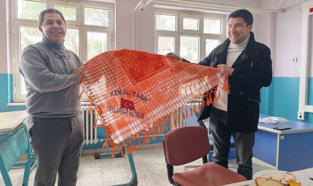 Yanık'a desteklerinden dolayı teşekkür eden Yaylapınar İhsan İzgi İlk ve Ortaokulu Müdürü Murat Turan, öğretmenler ve öğrenciler, Yaylapınar hatırası olarak kendilerine Yörük Kültürü'nü simgeleyen yörük poşisi hediye ettiler.