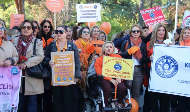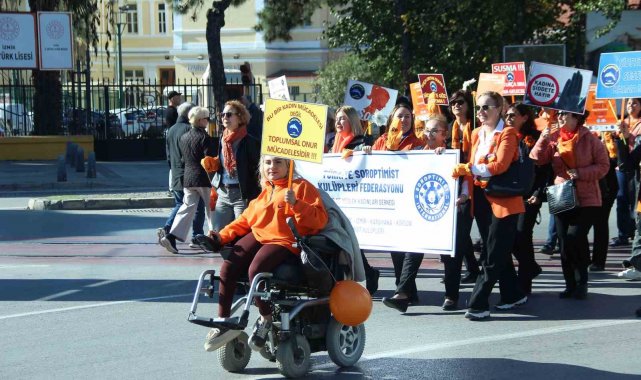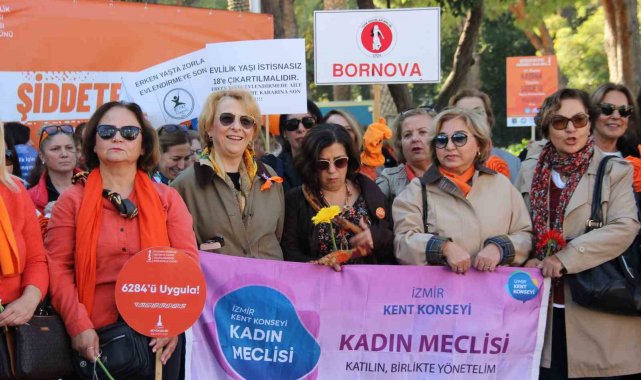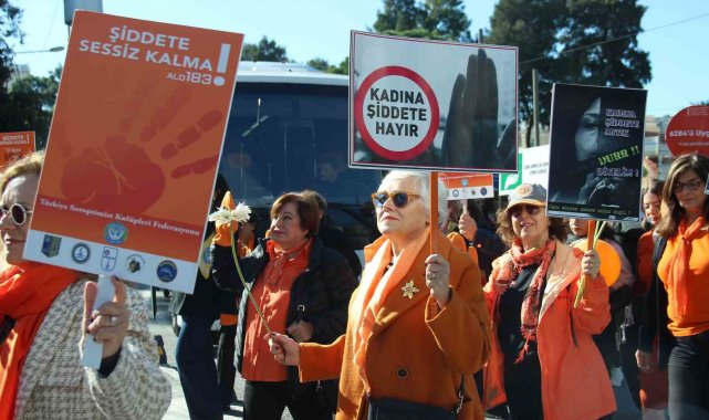 İzmir'de Kadına Yönelik Şiddete Karşı Uluslararası Mücadele Günü'nde turuncu giysileriyle bir araya gelen kadınlar, şiddetsiz bir gelecek için yürüdü.