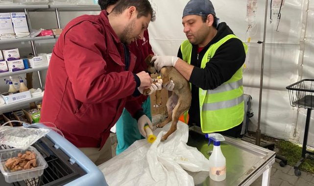 İzmit Belediyesi Veteriner İşleri Müdürlüğünün gezici muayene aracı patibüs, afet bölgesinde depremden zarar gören hayvanların yaralarını sarmaya devam ediyor. Ekipler, İstanbul Büyükşehir Belediyesi Veteriner Hizmetleri Müdürlüğü'nün Hatay Defne'deki tedavi merkezinde çalışmalara destek olarak, hayvanların bakım ve tedavilerini gerçekleştiriyor. Depremin merkez üssü Kahramanmaraş'ta çalışmalarına başlayan ekipler, Hatay Defne'deki destek çalışmalarından sonra Samandağ'a gidecek.