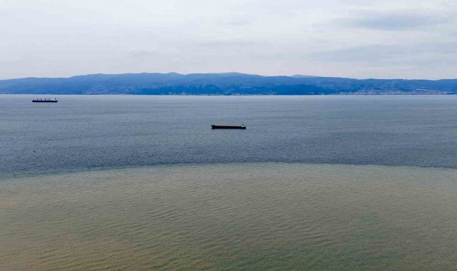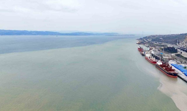İzmit Körfezi iki renk oldu: Derenin taşıdığı çamur denizin rengini değiştirdi