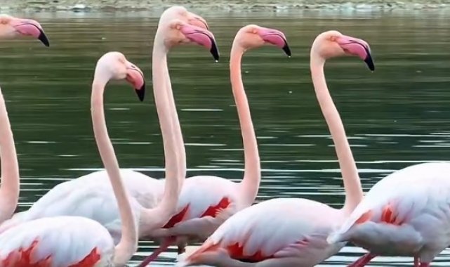Göçmen kuşların önemli duraklarından biri olan İzmit Körfezi, bu yıl da "allı turna" olarak da bilinen flamingoları ağırlıyor.