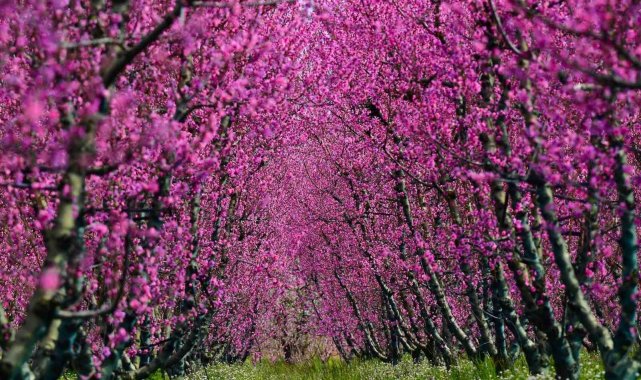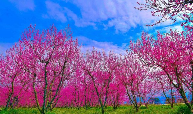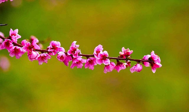 Bursa'nın İznik ilçesinde ilkbaharın gelişiyle birlikte meyve bahçeleri adeta renk cümbüşüne dönüştü. Özellikle şeftali ağaçlarının açan pembe-beyaz çiçekleri, doğaseverlere görsel bir şölen sunarken bölgeyi ziyaret edenleri kendine hayran bırakıyor.
